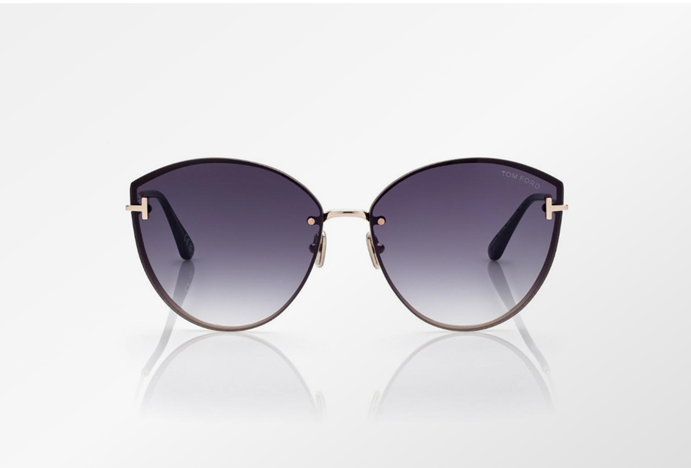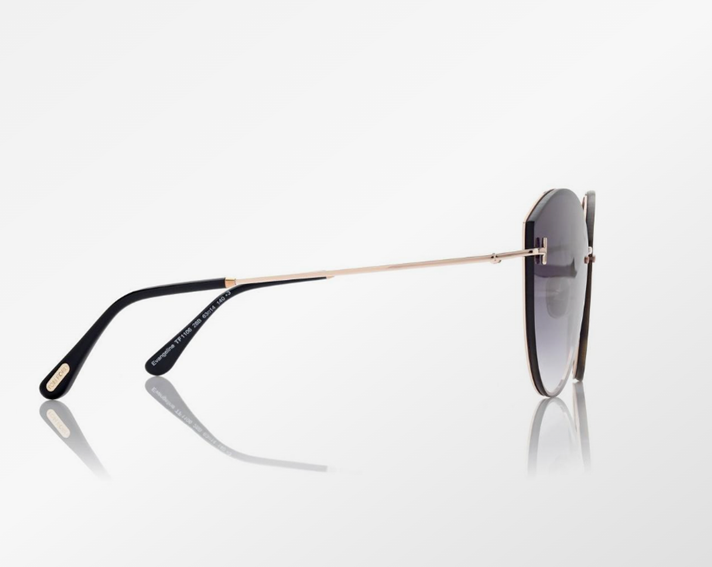 OVERSIZED METAL FRAME WITH SLEEK AND SOFT LINES, ENRICHED BY THE METAL 'T' TEMPLE DECORATION AND METAL 'T' LOGO.