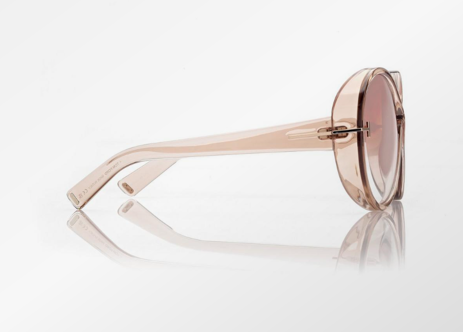 WIDE, ROUND FRAME WITH THE ICONIC INFINITY DESIGN AND FLOATING LENSES, REPRESENTING ETERNITY AND FEMININITY. THE STYLE IS ENRICHED BY THE METAL 'T' DECORATION AND METAL 'T' LOGO.