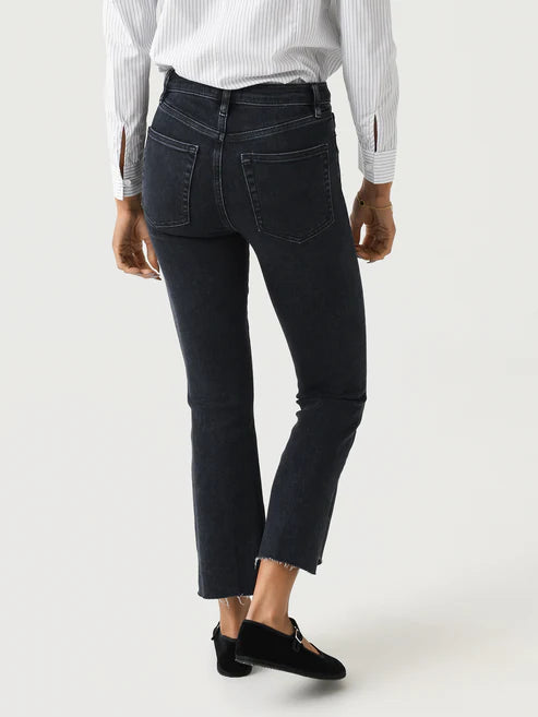 A best-selling cropped bootcut jean made from comfortable stretch denim and finished with a cascading raw hem.