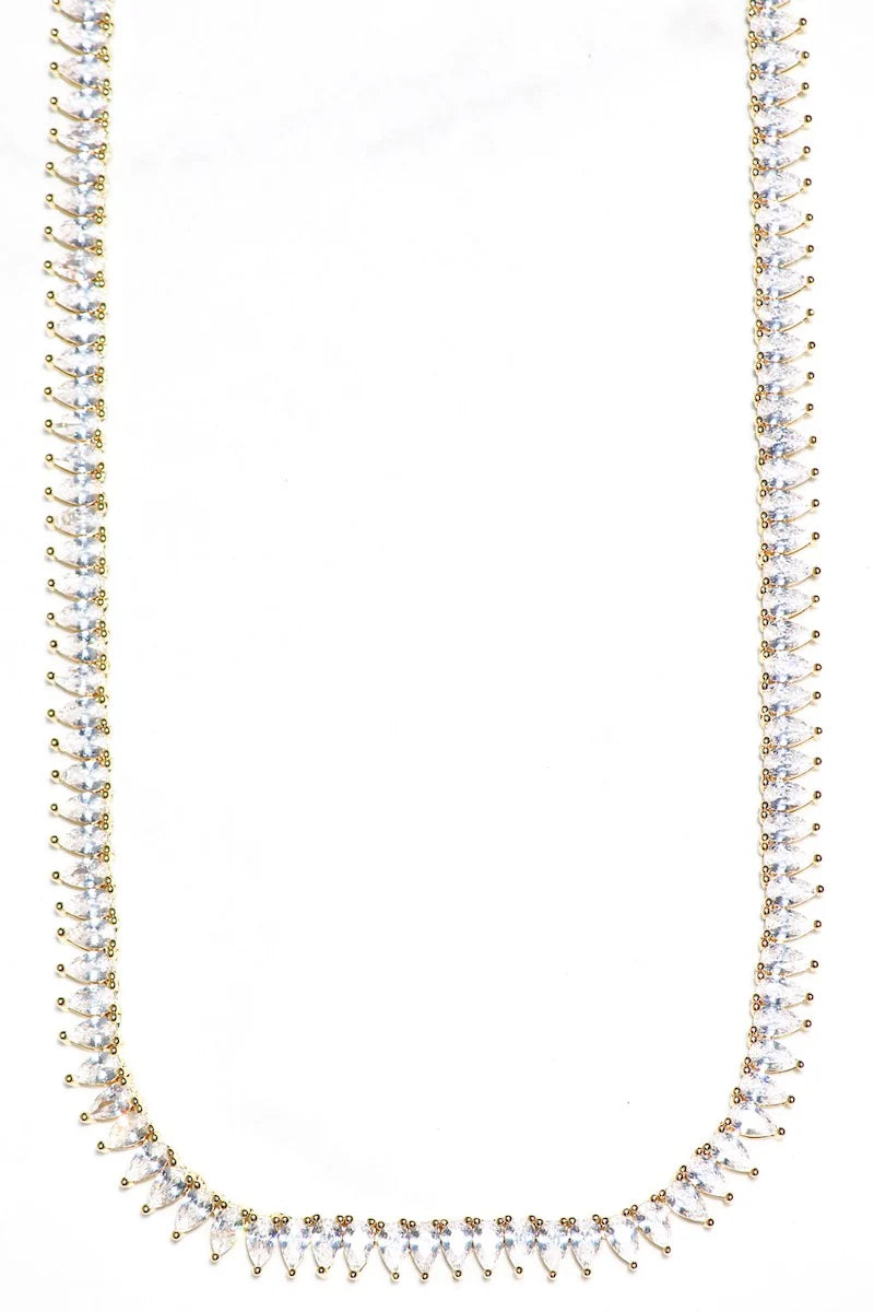 14K gold vermeil multi teardrop cubic zirconia and adjustable ball chain necklace. Crafted with 14K gold vermeil, this intricate necklace features multi teardrop cubic zirconia stones that sparkle and shine. The adjustable ball chain completes the look, giving you a custom fit so you can show off your style with confidence.