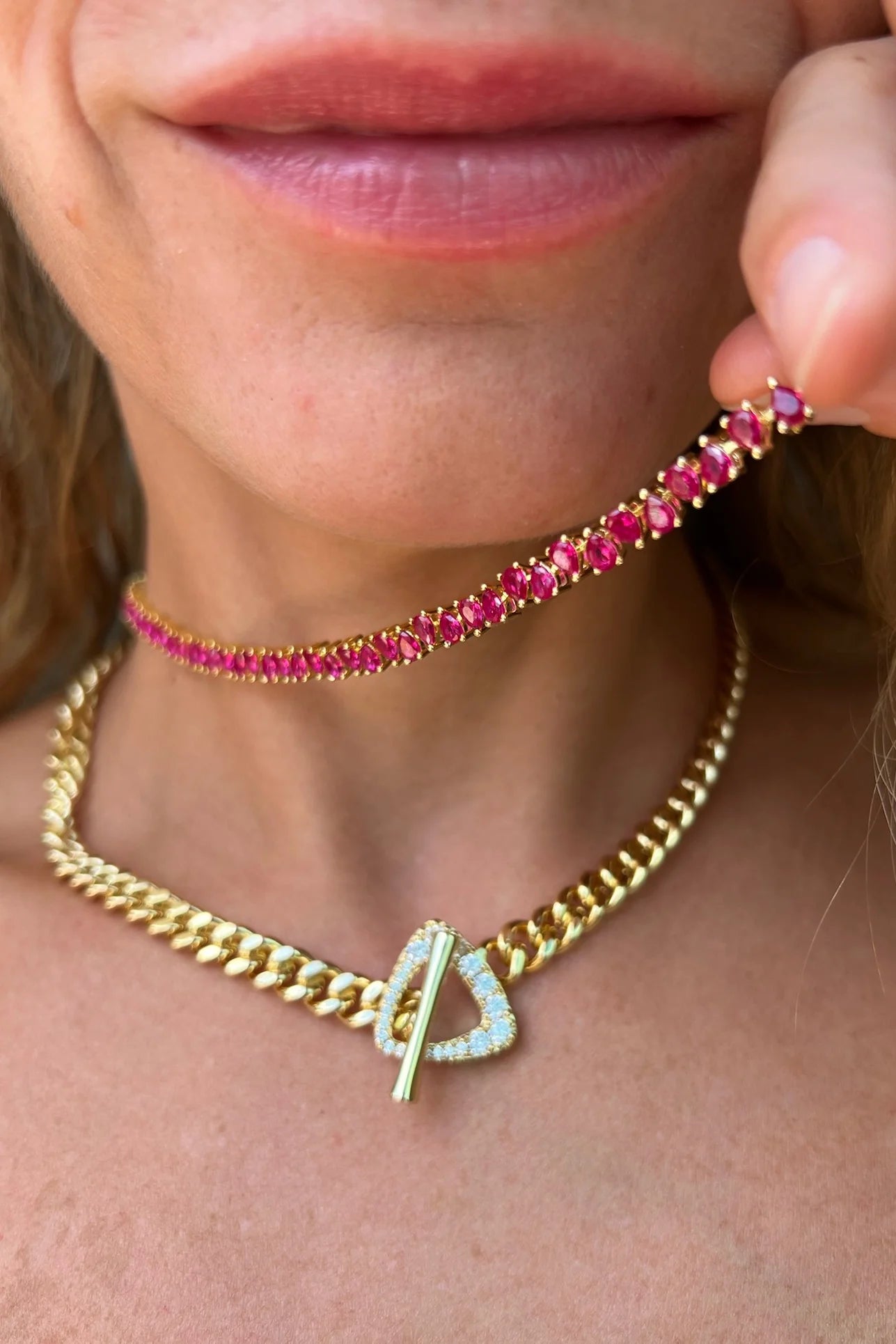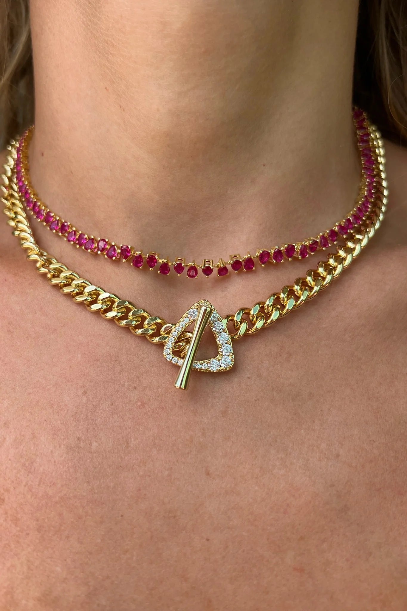 Chunky 14K gold plated stainless steel necklace featuring a trillion toggle on a 16" necklace.