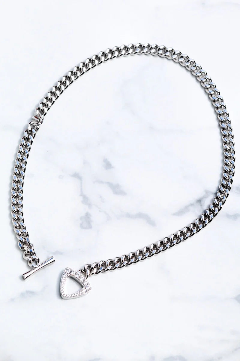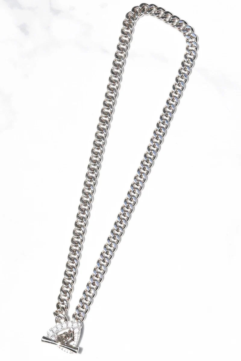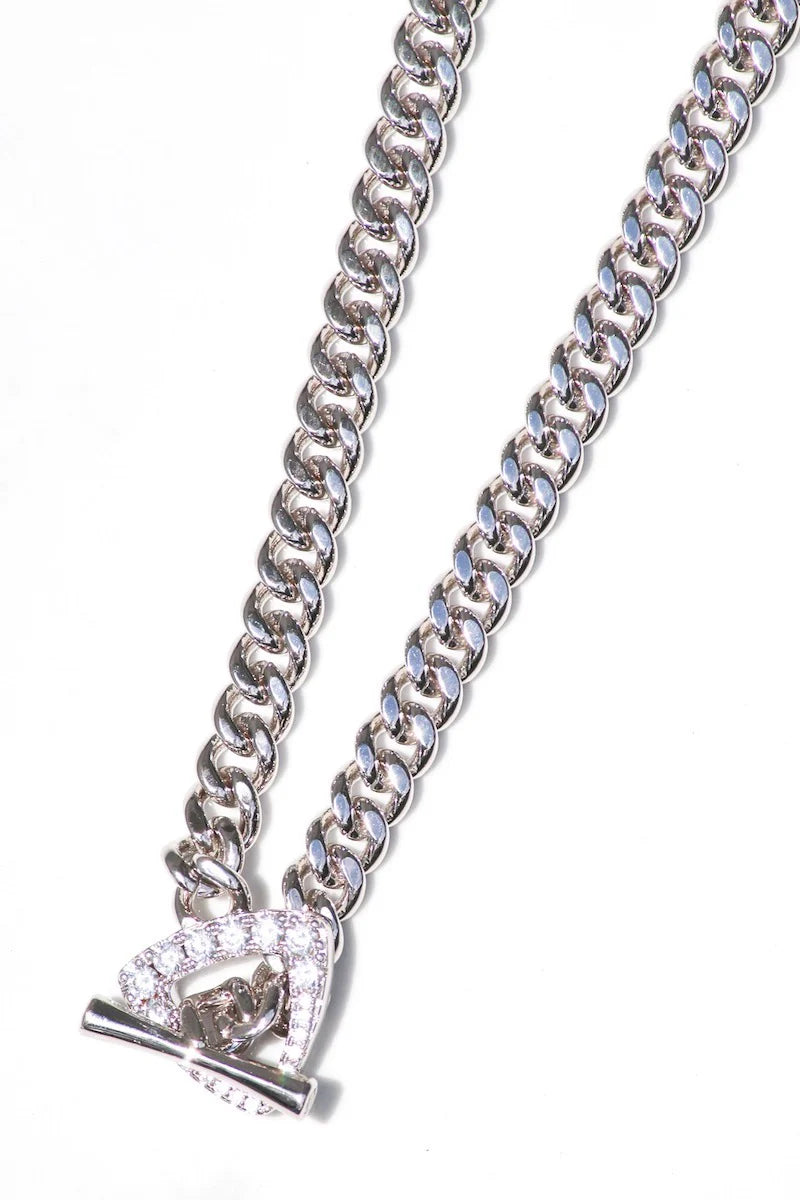 Chunky sterling silver plated stainless steel necklace featuring a trillion toggle on a 16" necklace.