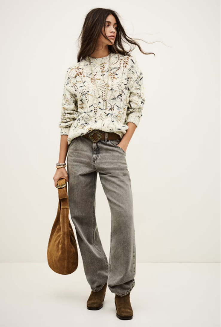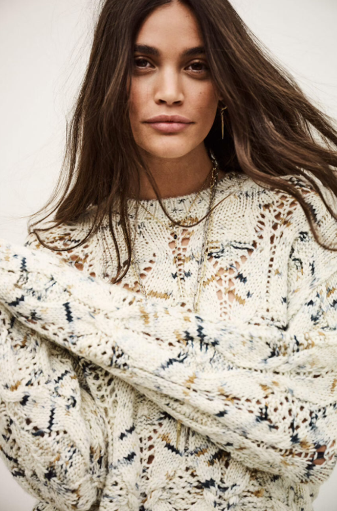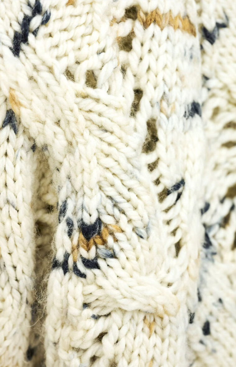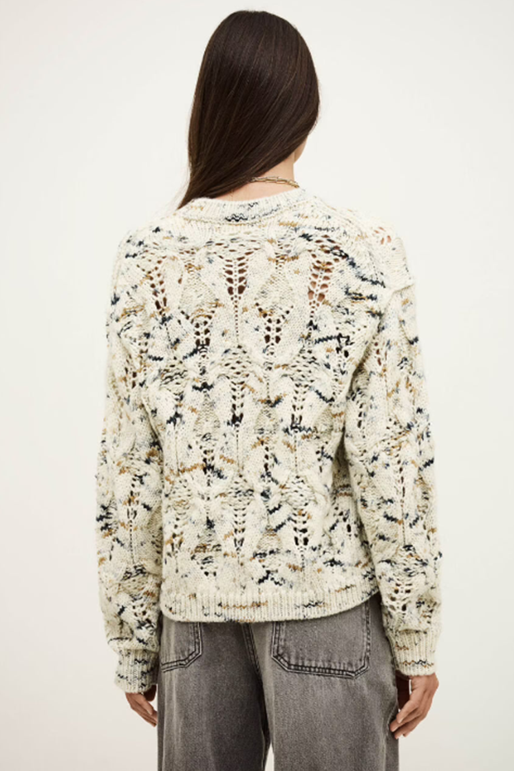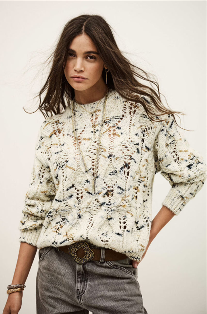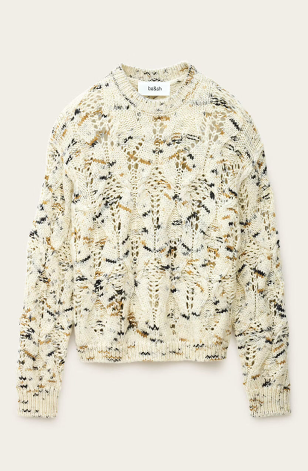 This Ba&sh Rave Jumper is your ticket to effortless style. Knitted from premium Italian wool, it showcases a charming white canvas dotted with black and tan accents—a design that's equal parts chic and whimsical. Pure wool means pure comfort, no matter where your day takes you.