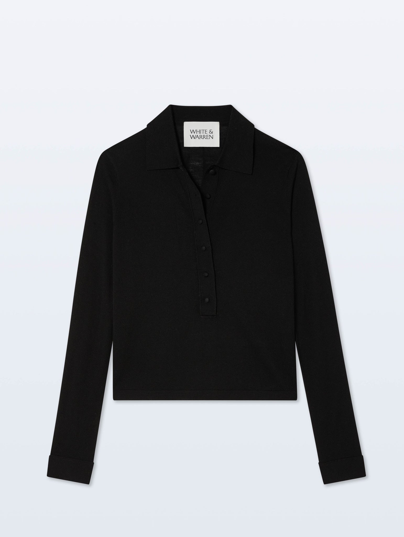A refined polo. Finely knit from superfine merino wool, this easy silhouette features a crisp collar and deep placket with covered buttons for an understated, elevated finish.