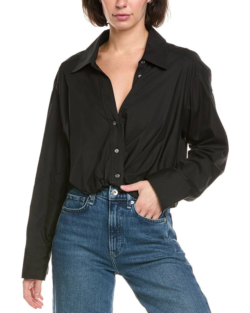 The Leo Top is crafted from Italian polished cotton poplin—a crisp, breathable fabric with gentle structure and a refined, smooth hand—in an earthy green hue. This cropped button-down silhouette features a sharp collar, convertible long sleeves, and a twisted hem detail that hits at the navel for a relaxed, modern shape.