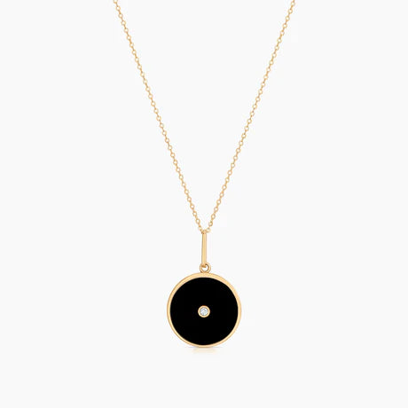 Elevate your everyday style with this moody coin charm in striking black enamel and a sparkling cubic zirconia.