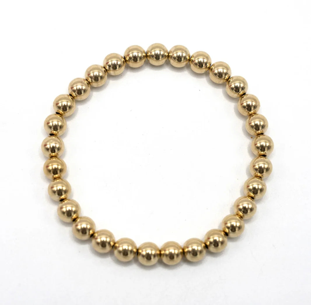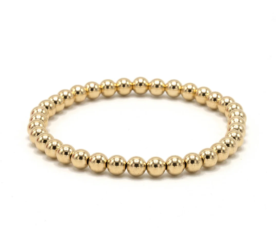 This 5mm beaded stretch bracelet is made from 14k gold-filled material and designed to resist water, perfect for everyday wear. Available in 6.5" sizes, it can be worn alone or layered for a chic, versatile look. Part of the erin gray waterproof collection, it offers both style and durability.