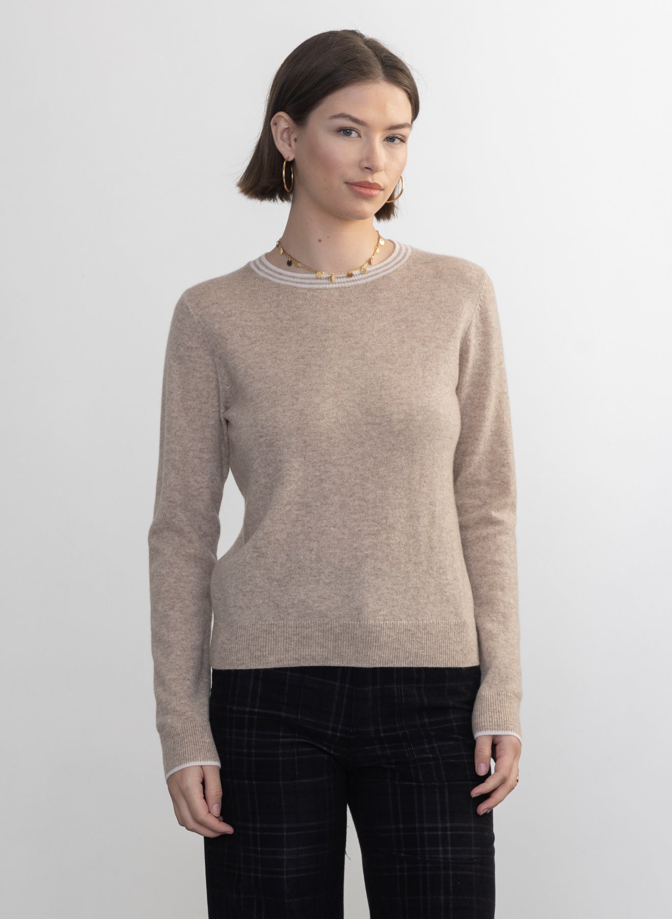 Experience the ultimate in versatility with this lightweight 100% pure cashmere sweater, designed to be your year-round favorite. Made from the softest, highest-quality cashmere yarns, it offers exceptional comfort and luxury. Featuring a timeless fit with ribbed cuffs and neckline, each detail is enhanced by a stylish contrast color for a refined finish.