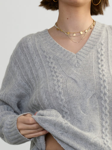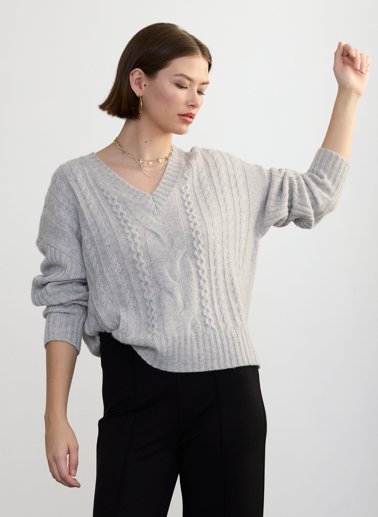 Bianca Cable Vee, named for its meaning of “pure” in Italian, is crafted from seriously soft, 100% pure cashmere. A classic centered cable and clean V-neckline give it timeless appeal, while rib trims finish the silhouette with polish. The midweight hand makes Bianca endlessly versatile—layered over a tee, under a blazer, or paired with denim. Our ultrafine cashmere is the highest quality available!Ribbed V-Neck and HemUltra Soft CashmereCable KnitPulloverSIZE & FIT:Model (5’9”) wears a size small