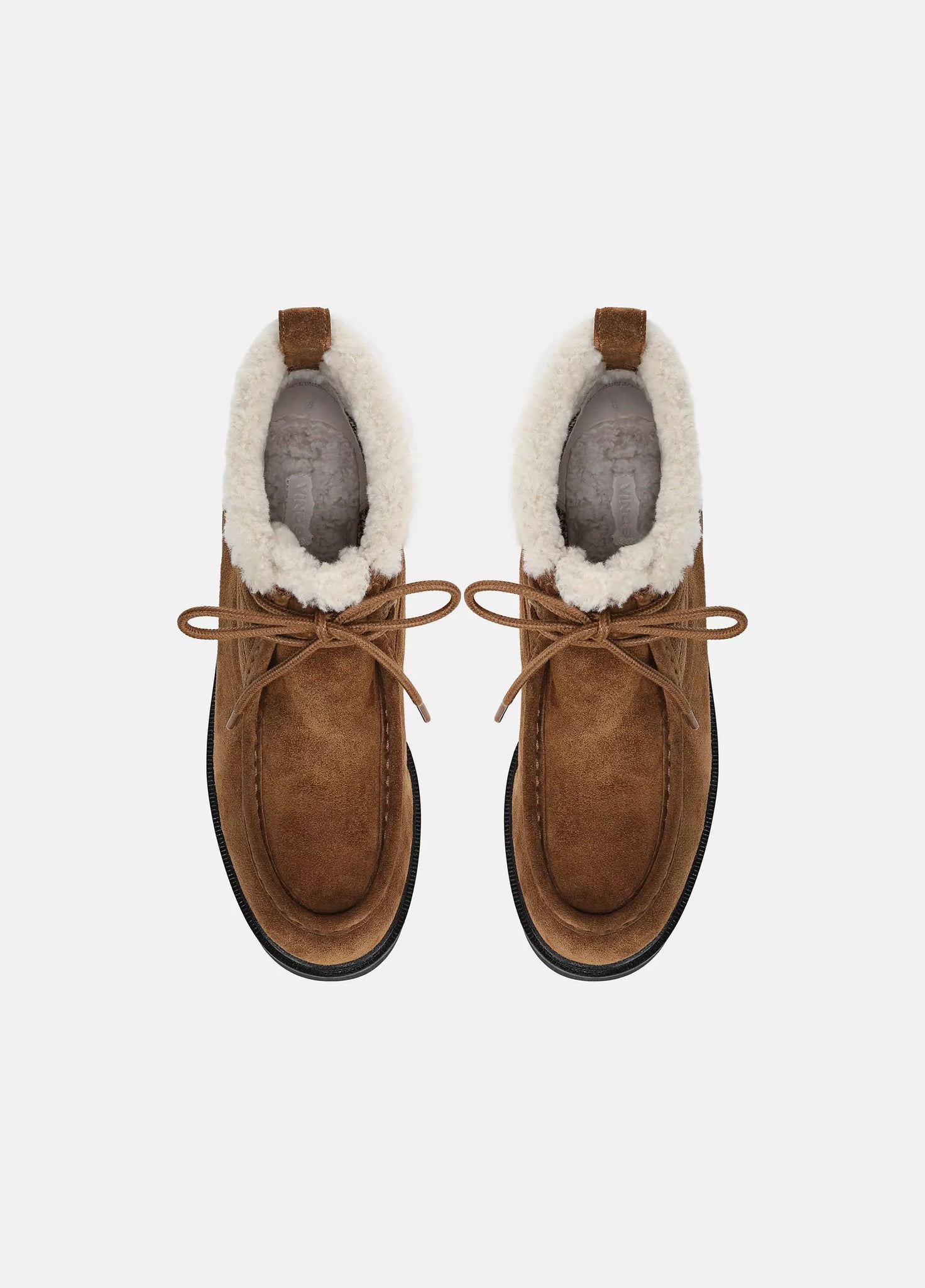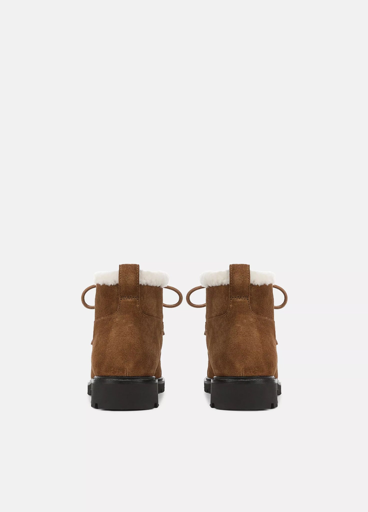 A refined interpretation on a utilitarian classic, the Vince Sierra lug sole boots are crafted from buttery suede with a plush shearling lining.