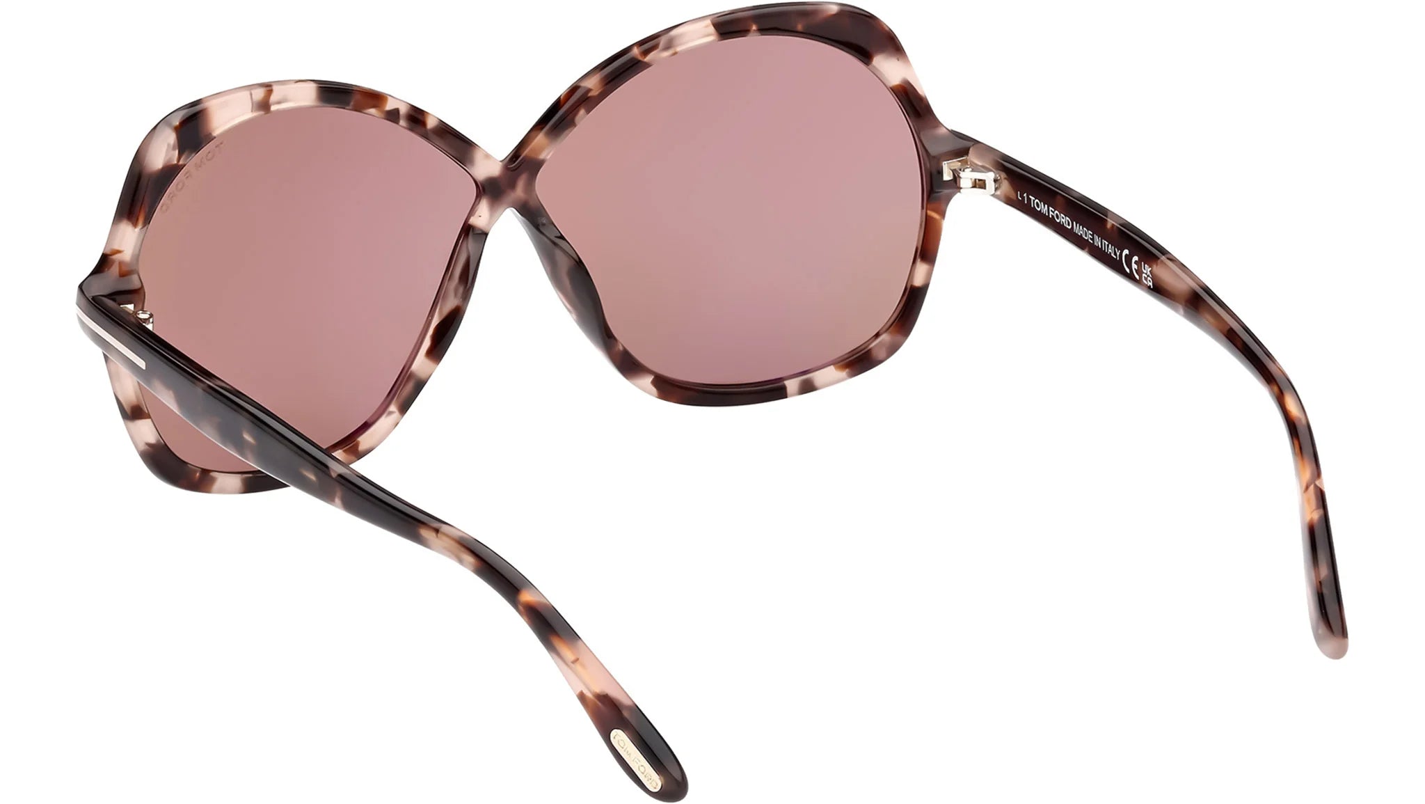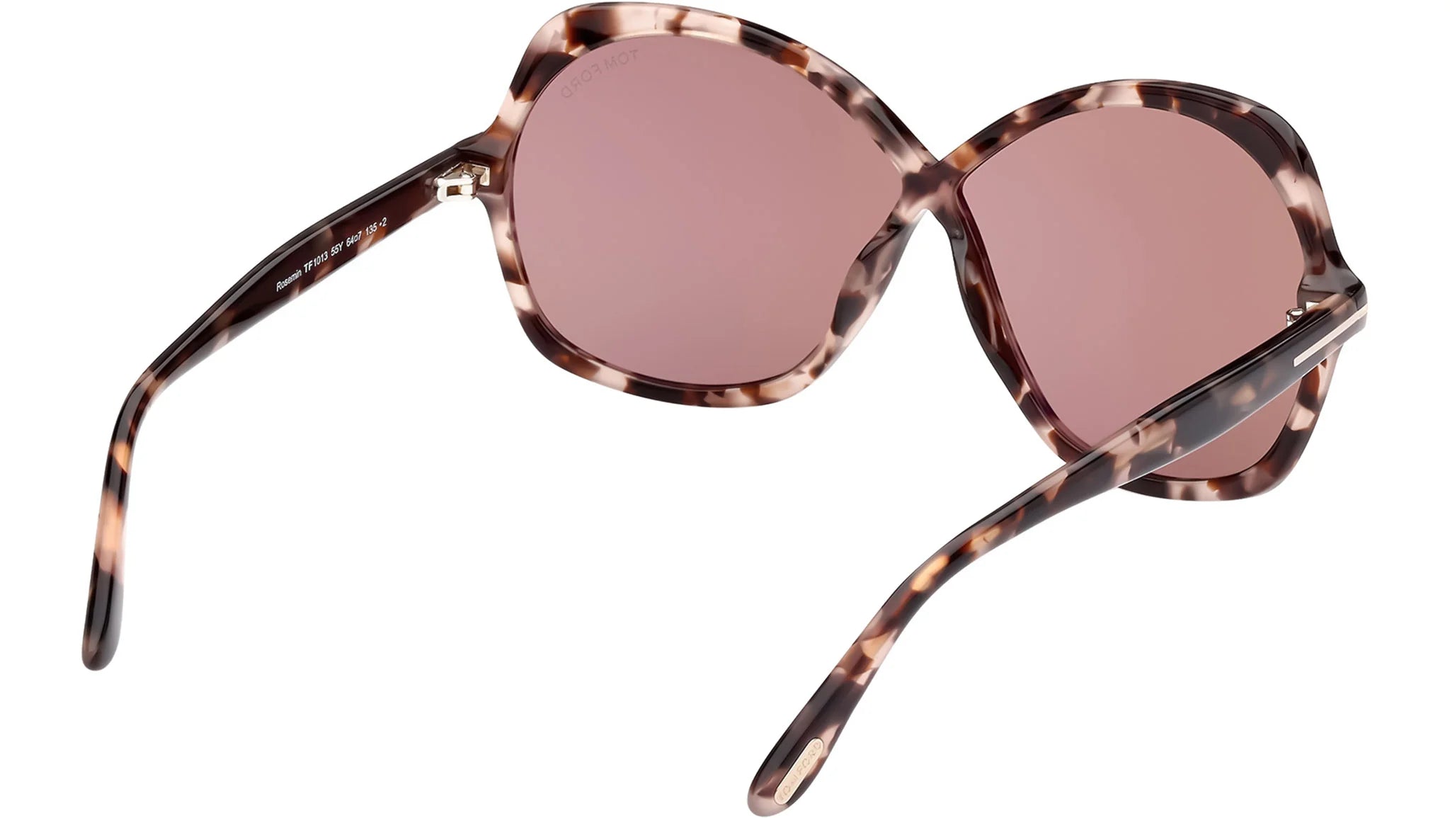 Tom Ford Rosemin sunglasses for women model FT1013 featuring coloured havana full-rim acetate frame with violet lenses. Brand code: 1013. Color code: 55Y. Authorised Tom Ford Online Reseller. Your glasses will include the original case and accessories and will be covered by a 12-month global warranty.