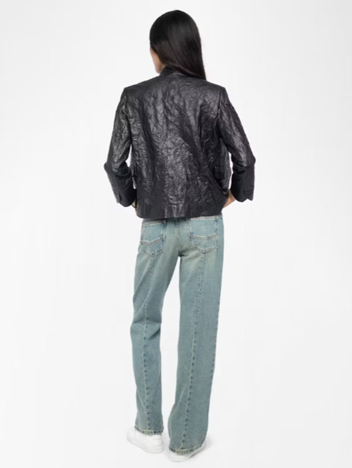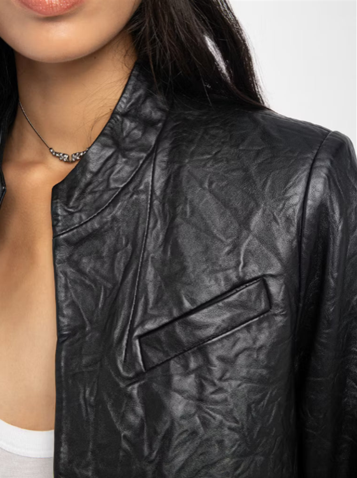 - An emblematic material of Zadig&Voltaire, crinkle leather is achieved through a multi-step process imagined by the house, guaranteeing a unique product with exceptional craftsmanship.