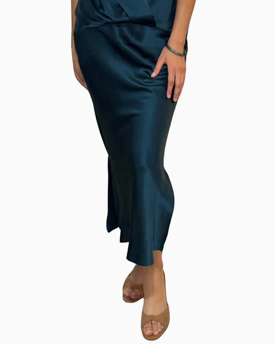 This effortless curve-skimming slip skirt is sure to become your go-to bringin'-sexy-back skirt from the moment the weather warms and throughout the year.