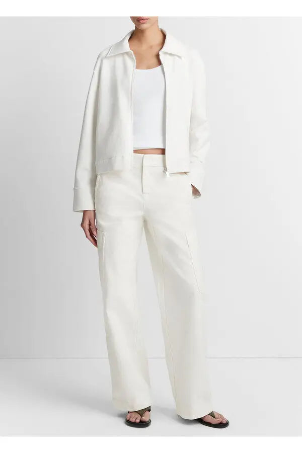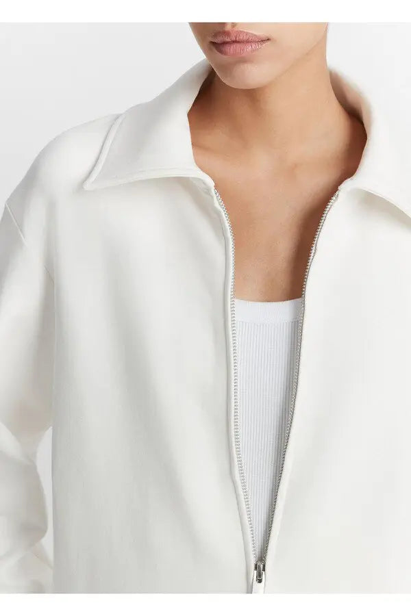 Styled with a zip front and spread collar, this sporty cotton-blend topper feels as good as your favorite sweatshirt.