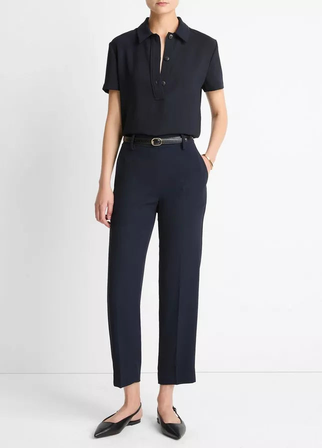 With the appearance of a trouser and discreet comfort from an elasticized back waist, this crepe pull-on pant will readily take on the lion's share of the work in your wardrobe. It's tailored with a versatile, straight cropped silhouette that tapers slightly below the knee.