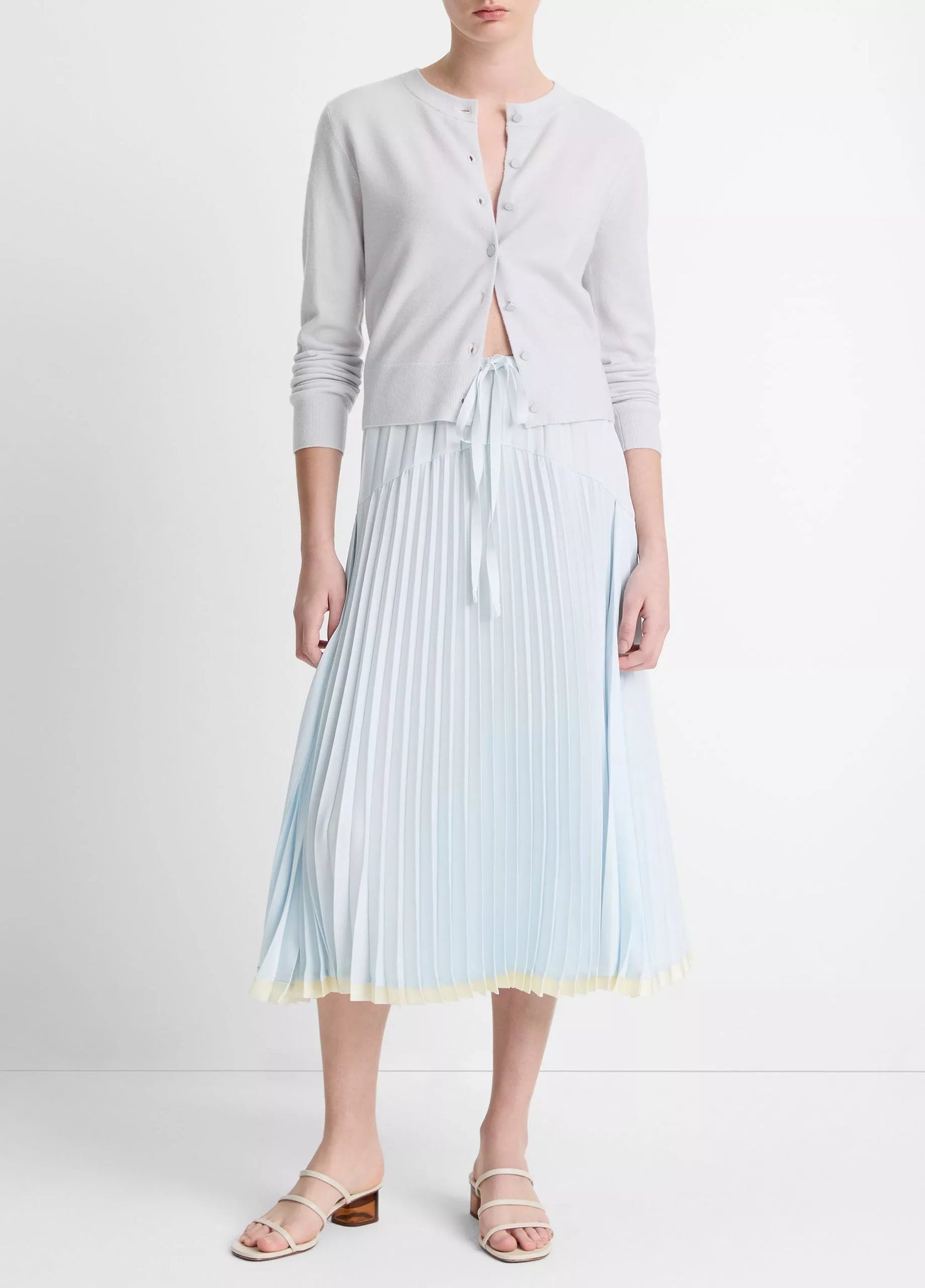 Our slim cardigan is knit from a sumptuous blend featuring wool and cashmere that boasts a compact, clean and lightweight feel. Take heed: we've discreetly finished it with a contrast-colored half-moon detail at the interior of the nape.