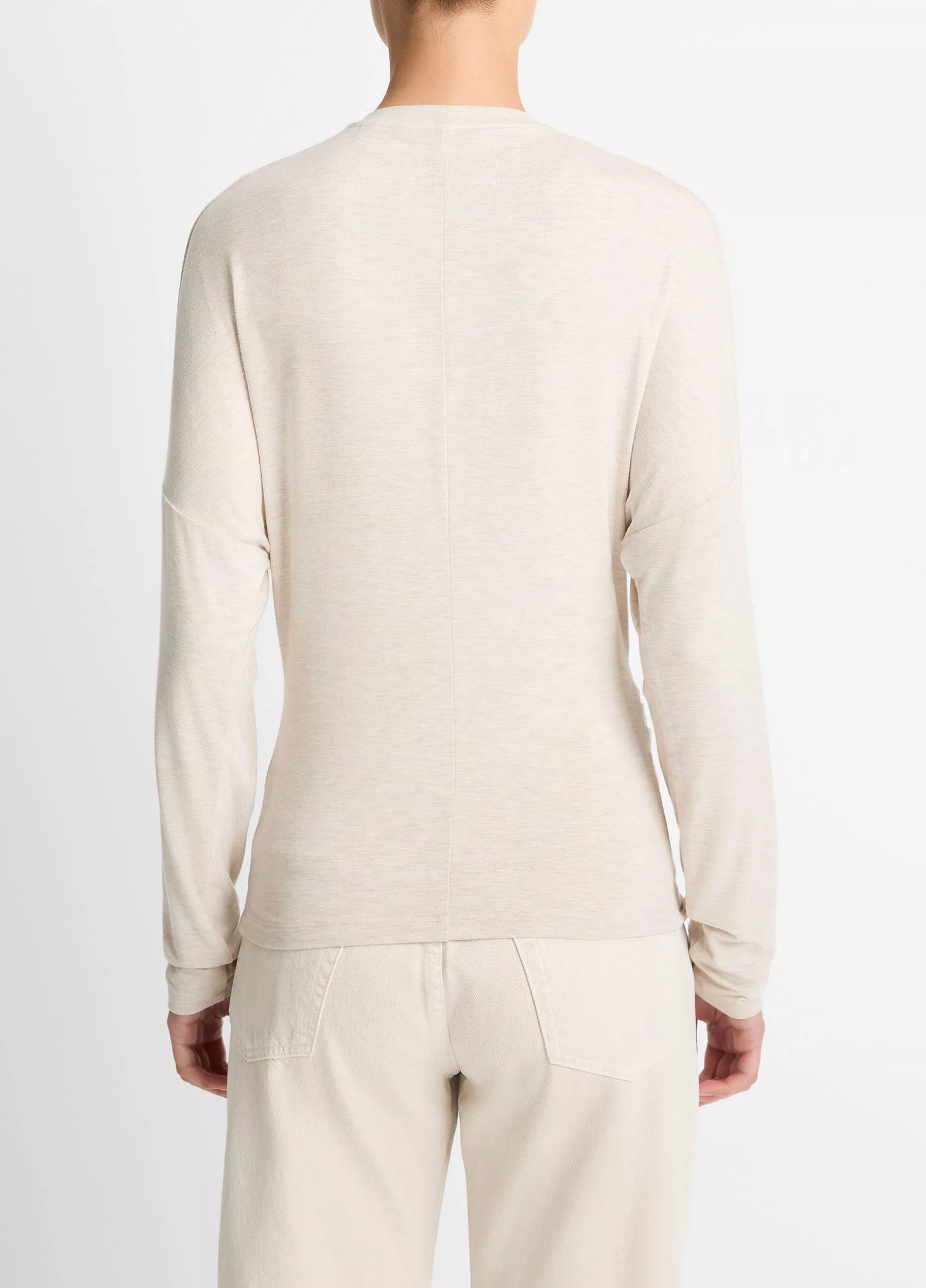 The everyday long-sleeve tee is elevated with draped detailing at the waist, allowing it to shift between casual and dressier occasions with ease.