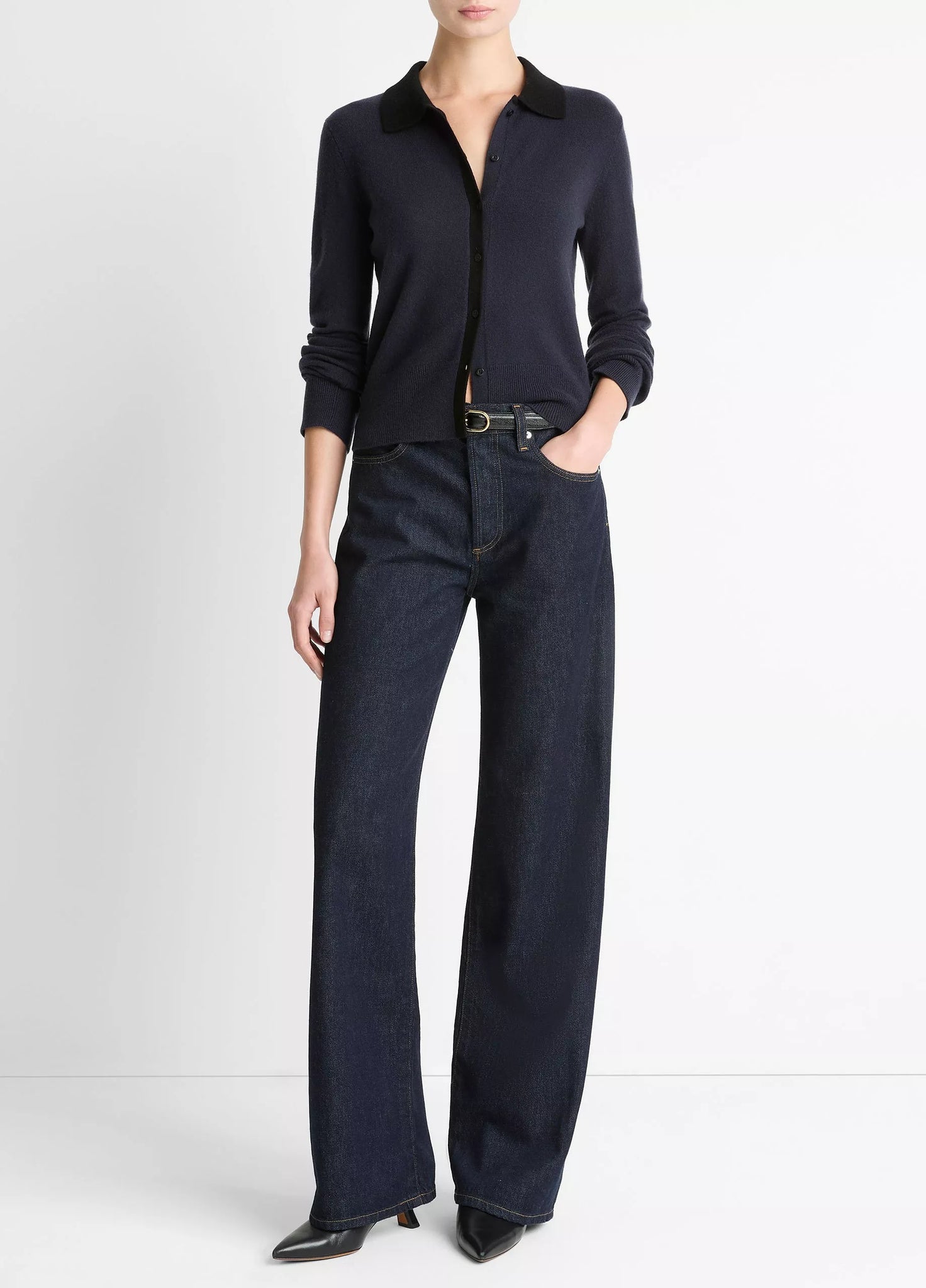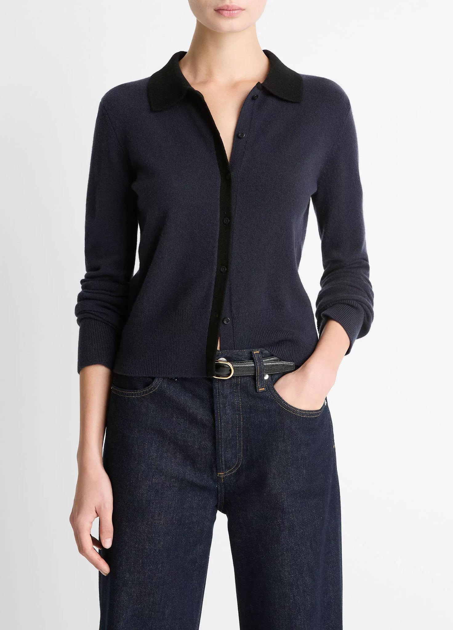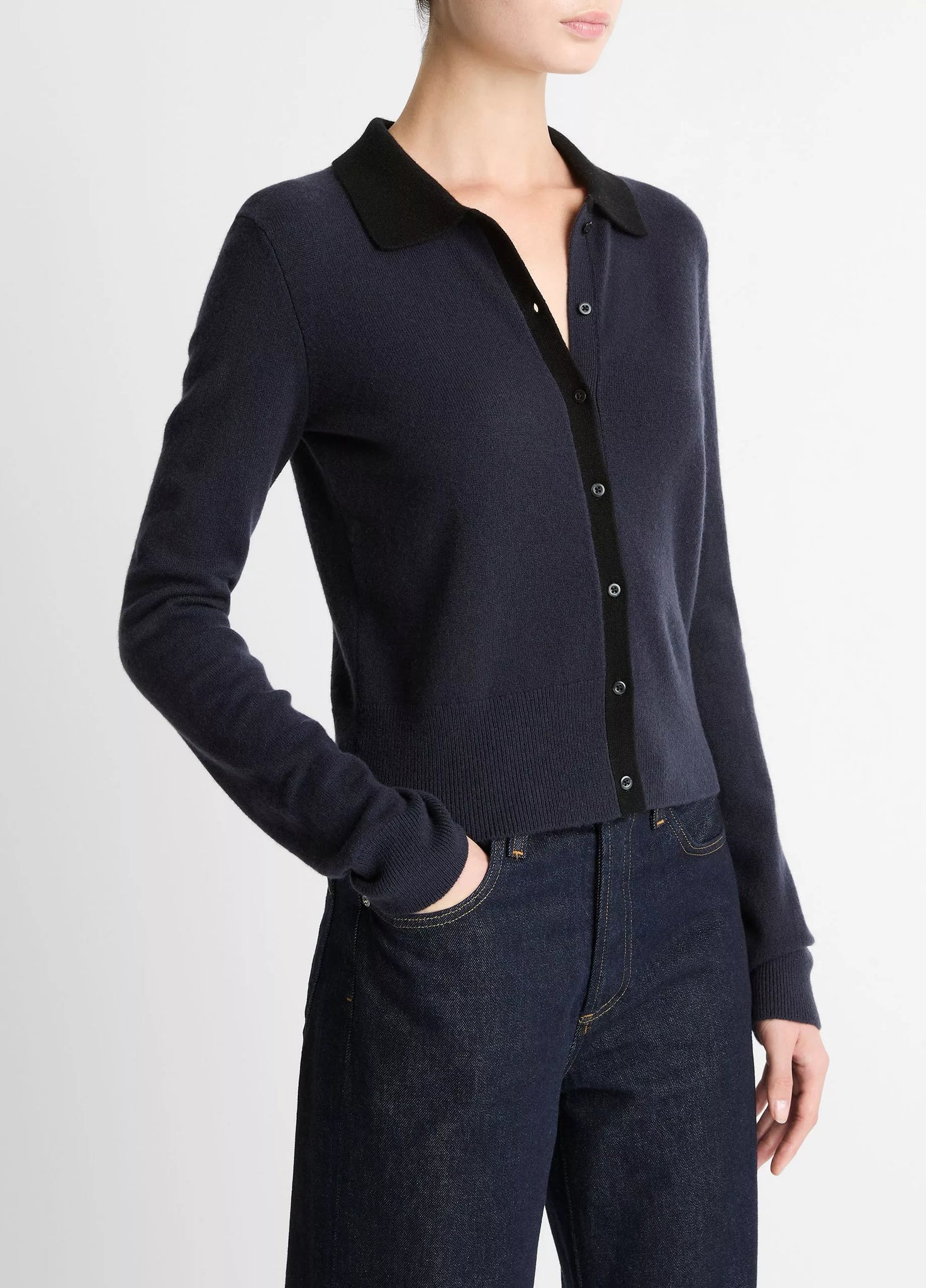 Knit from our signature blend featuring wool and cashmere for an exceptionally soft, breathable feel, this timeless cardigan is distinguished by its contrasting collar and placket.