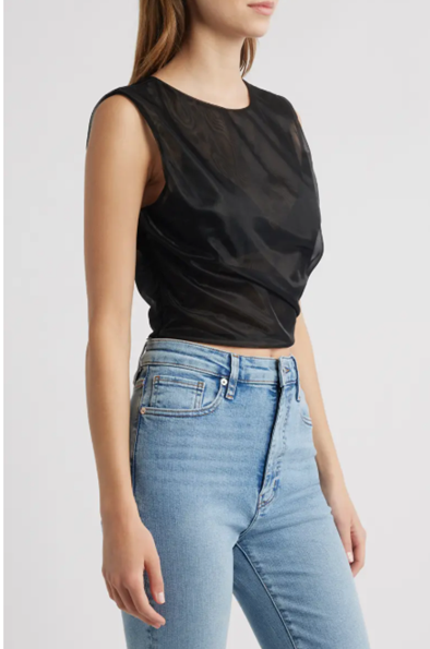 Sleek, sheer, and slightly twisted, this double-layer mesh tank features a sculpted drape and just the right amount of sheerness. The hidden zipper keeps it effortless. Wear it solo for sultry nights out or under a blazer just because.