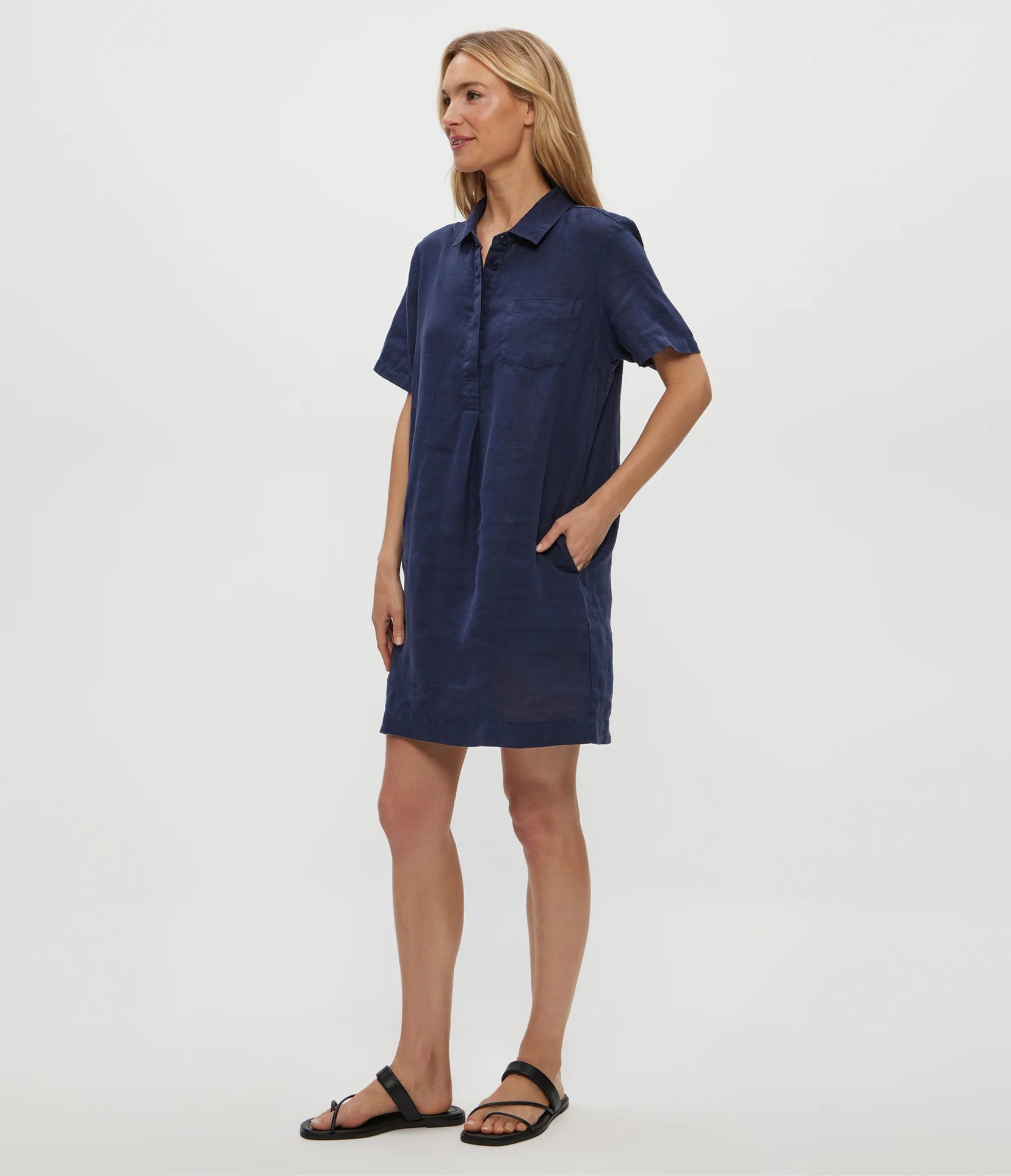 Ola is a short sleeved mini dress with a polo collar – and pockets! Made from our eco-friendly Woven Linen that’s lightweight and breathable.
