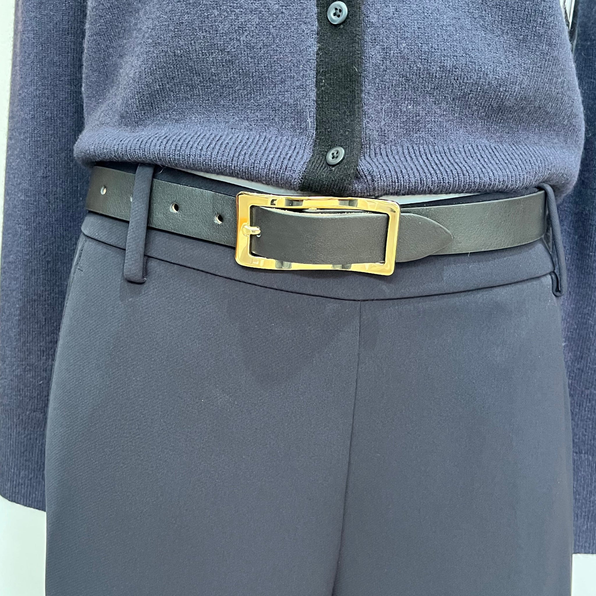 Crafted from luxurious black Italian leather, this narrow belt is the epitome of minimalist sophistication. The solid brass buckle, gold-plated for a refined finish, adds a subtle yet impactful touch to this classic piece. Perfect for both casual and formal ensembles. Proudly made in California, this belt reflects Streets Ahead’s commitment to quality and timeless design.