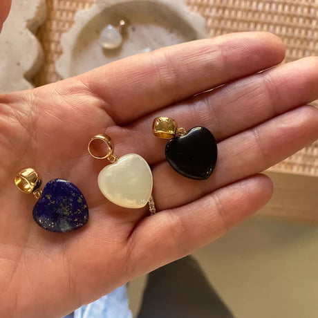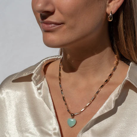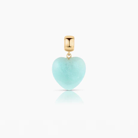 Our favorite puffy heart in our new gemstone color crush - amazonite. This large round bail charm can be worn on almost any style chain or choker. Mix in with your golds for the perfect pop of this cool blue-green gemstone.