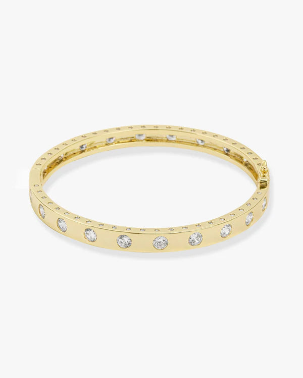 This classic bangle featuring round simulated diamonds is the perfect piece to elevate any everyday look.