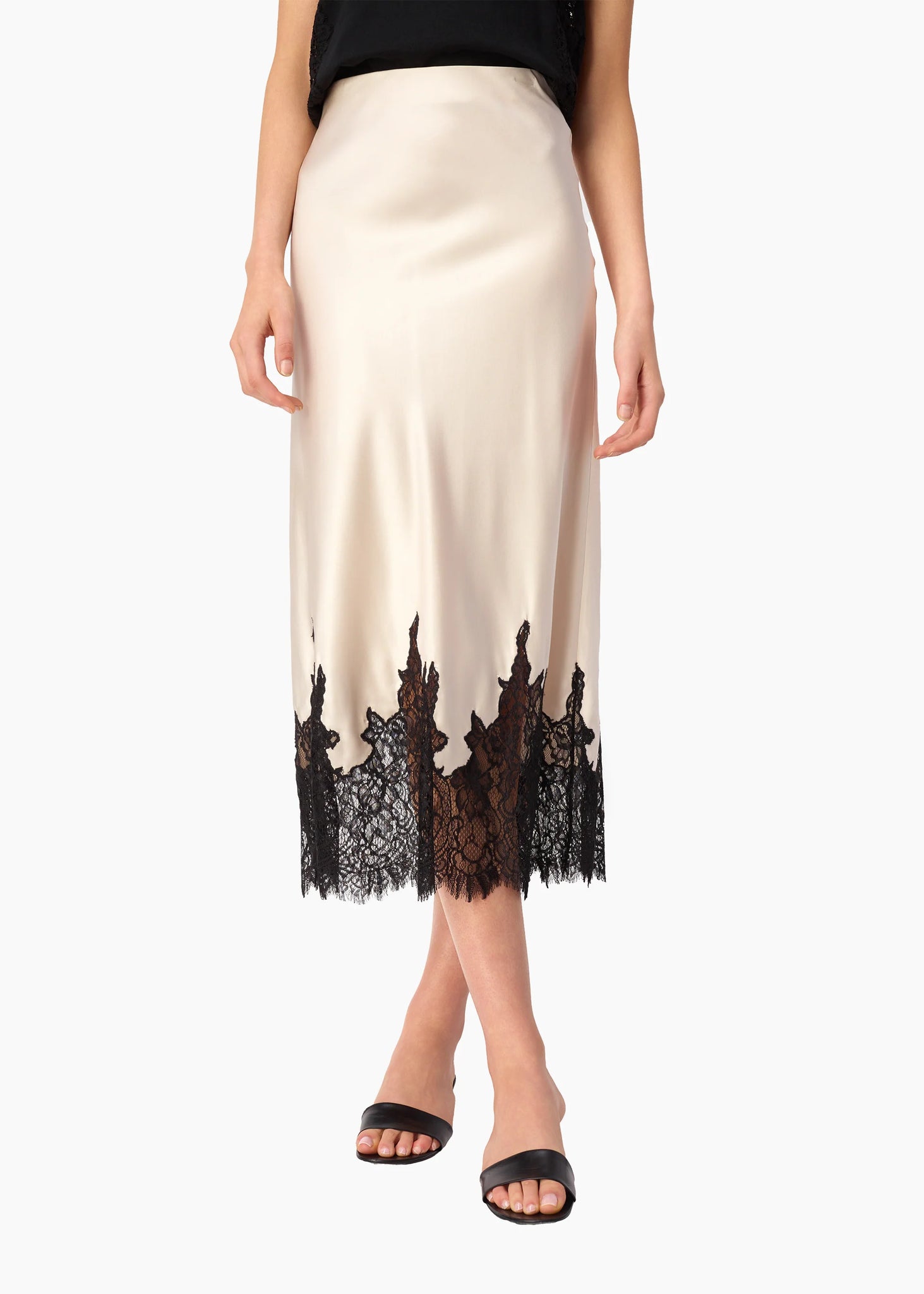 Bias cut midi skirt with inside hidden elasticated waist