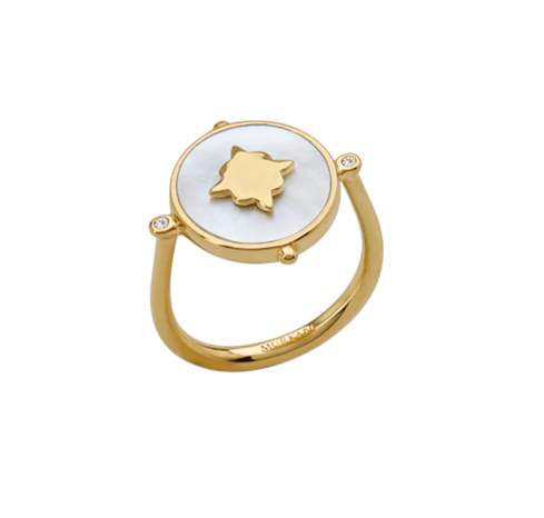 Oval pendant ring with Mother of Pearl and White Topaz details.