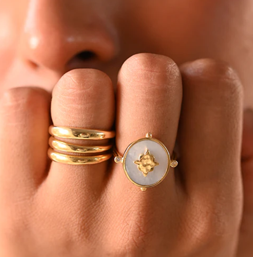 Our Temple Moon rings are delicate and care should be given when wearing. We recommend you don't wear this ring in water when swimming, bathing etc due to its delicate nature and to extend its life.
