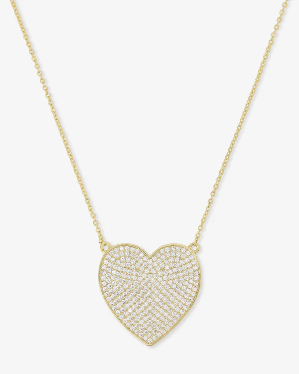 A Melinda Maria classic reimagined. Say a BIG “I Love You” to yourself with our XL You Have My Whole Heart Pavé necklace. Add it as a loving layer to carry love with you wherever you go.