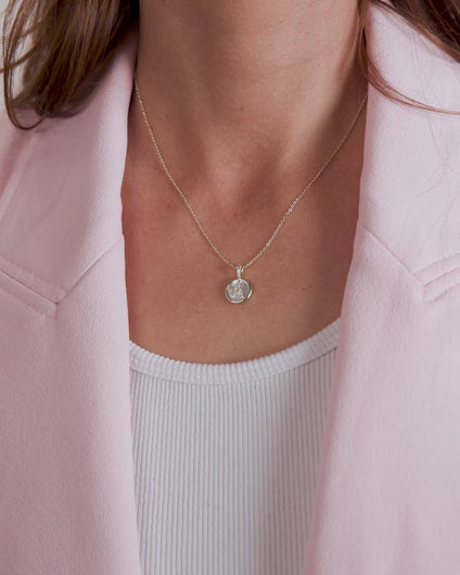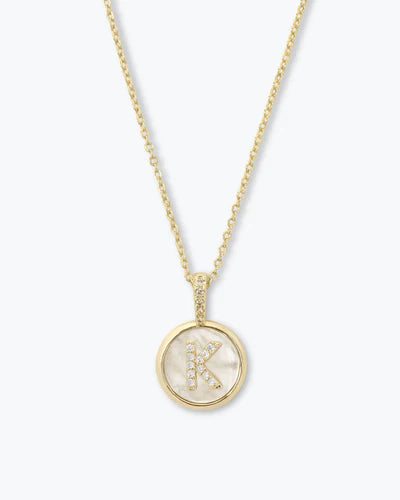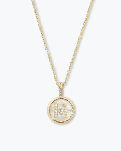 Meet your new dainty obsession: the Baby Love Letters Medallion Necklace. This small, minimalist piece offers a delicate take on a personal statement. Crafted in luxury 18k plating, it features a stunning combination of iridescent mother-of-pearl and sparkling white simulated diamond pavé initials. It's the perfect elegant touch for everyday wear, proving that true style can be simple and refined.
