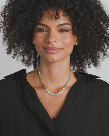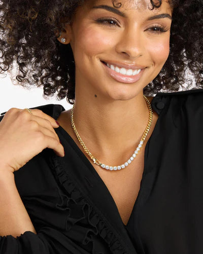 Embrace maximum sparkle. The Baby Julian REALLY Loves Diamonds Necklace gives you the ultimate luxury glow-up in a wearable everyday size. This stunning 5mm Cuban chain is plated in 18k gold and loaded with fourteen brilliant white simulated diamonds. It's a bold statement piece that proves elegant style can still be "extra".