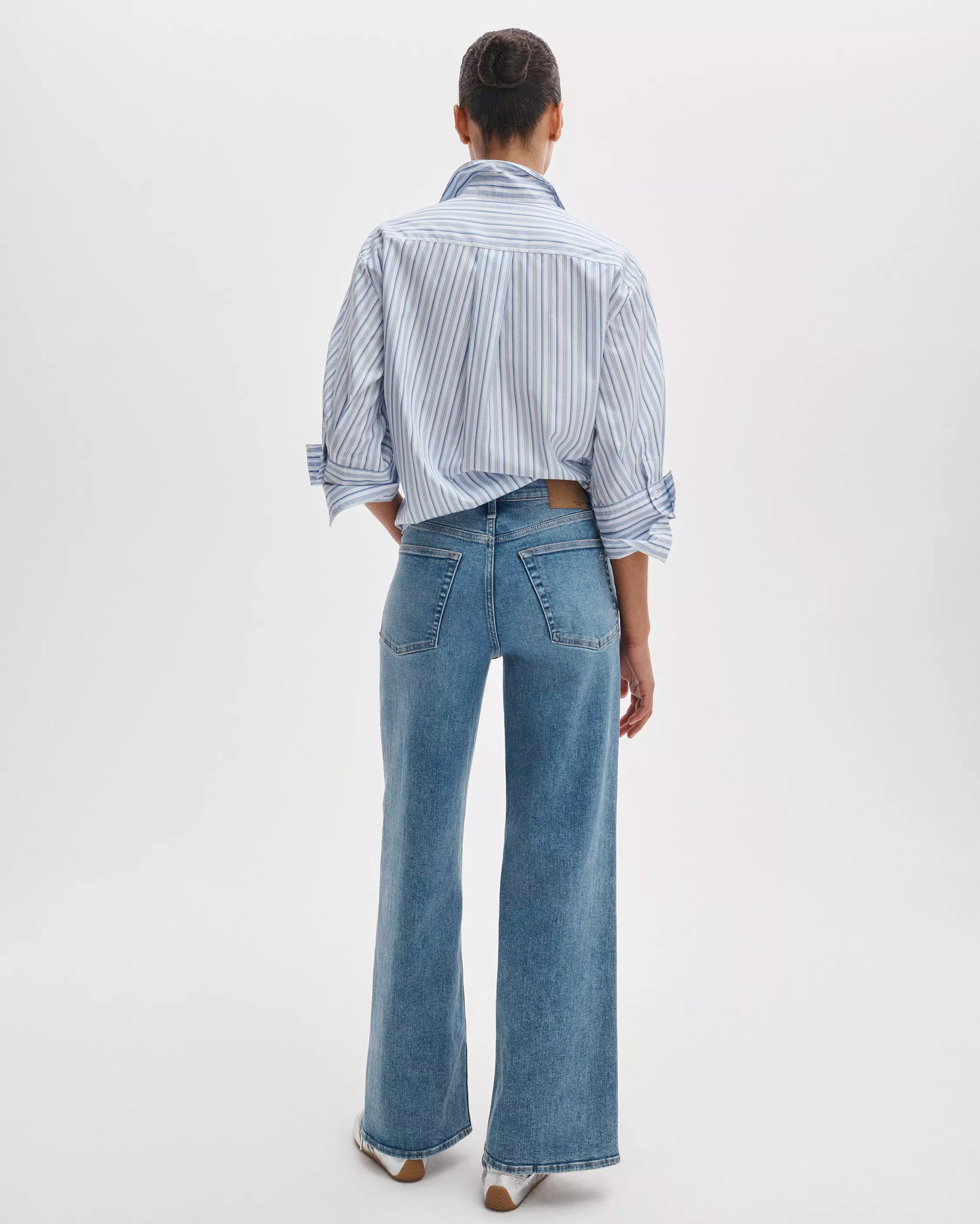 The Andi. High-waisted jeans with a slender thigh and a wide, full-length leg. Crafted from our Flexi denim that smooths, sculpts, and stretches for a perfect fit anytime, anywhere. In Lyon, a light indigo wash.