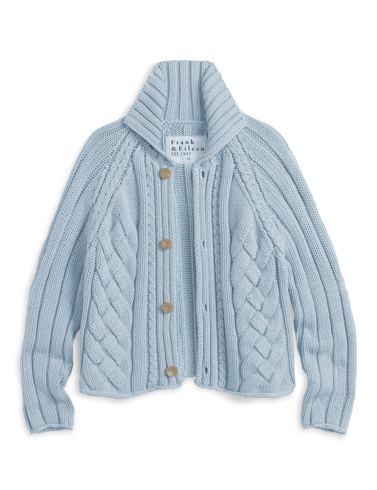 Introducing a mini version of the timeless, classic Cotswolds cardigan everyone loves! This cropped cable knit cardigan in luxuriously soft Pure Italian Cotton has all the signatures of the original—richly textured braided patterns, elegant horn buttons, and an exaggerated cozy collar–with a versatile cropped fit that shows off your layers!