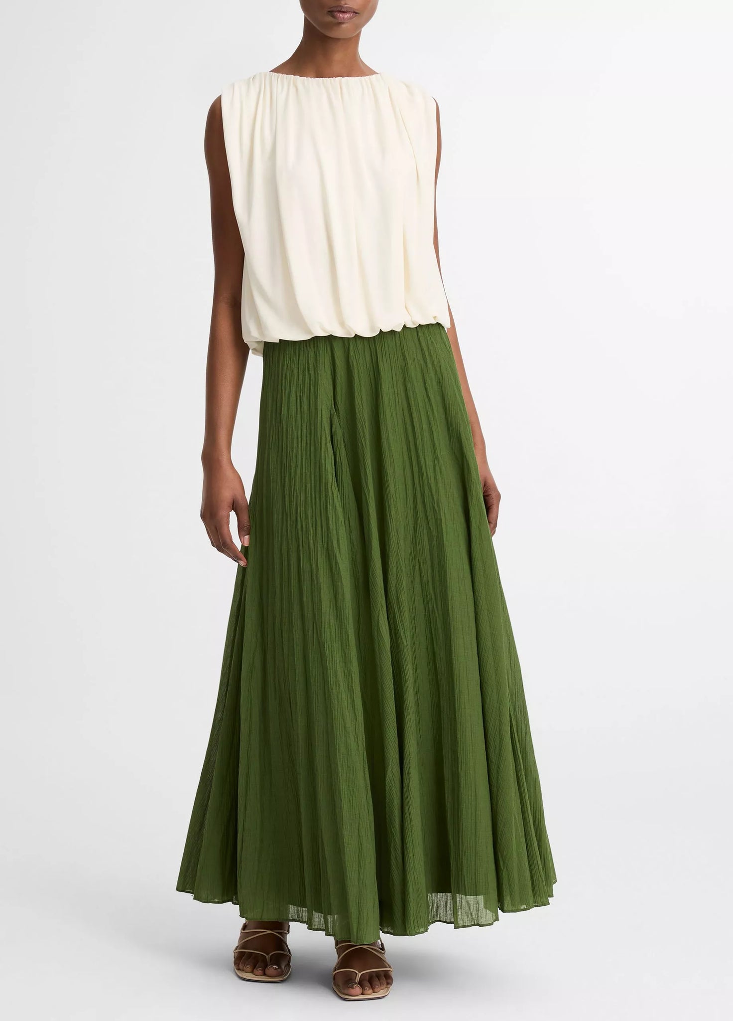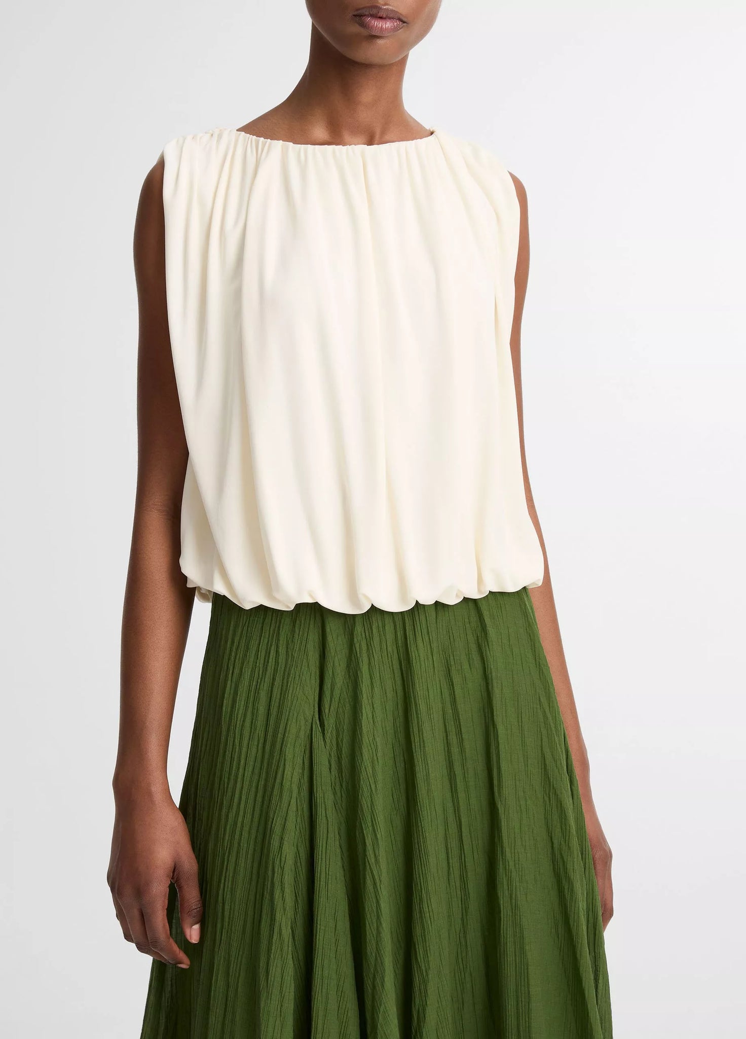 Fluid matte jersey lends a dressier appeal to our sleeveless top, designed with an elasticized hem to create that soft-yet-striking bubble shape.